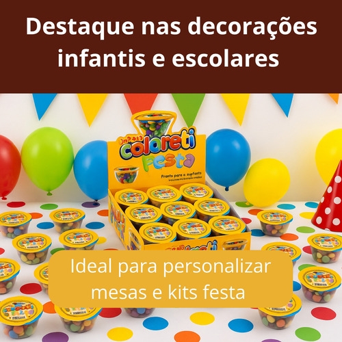 - Confeitos coloridos em porções práticas e individuais