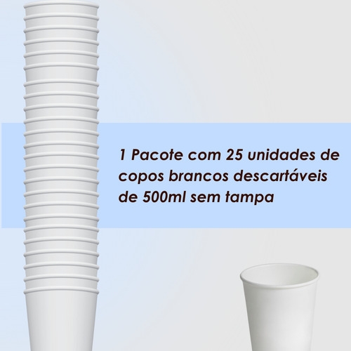 Copo de Isopor Branco 500ml Pacote com 25 Unidades