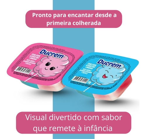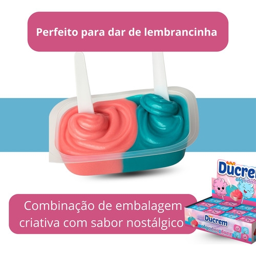 ducrem algodão doce, sobremesa pronta individual 25g, display ducrem 18 unidades, doces lembrancinhas festa infantil, creme algodão doce sobremesa, lanche prático doce individual, pote sobremesa algodão doce, sobremesa cremosa ducrem jazam, doces para festas e eventos, guloseima algodão doce pote