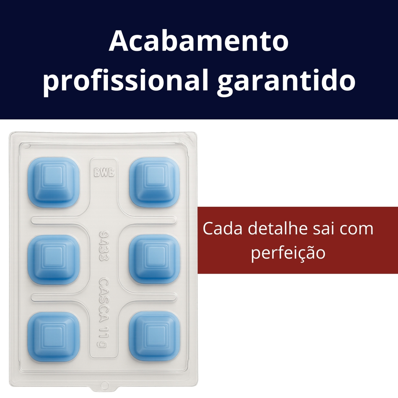 Forma especial desenvolvida para produção de chocolates em formato de caixinha alongada, com acabamento uniforme e profissional.