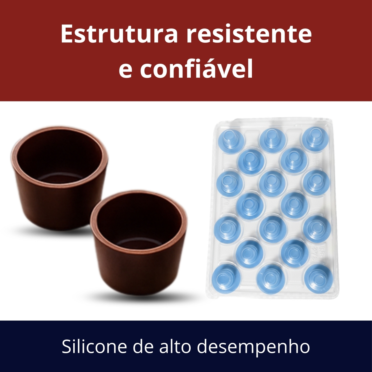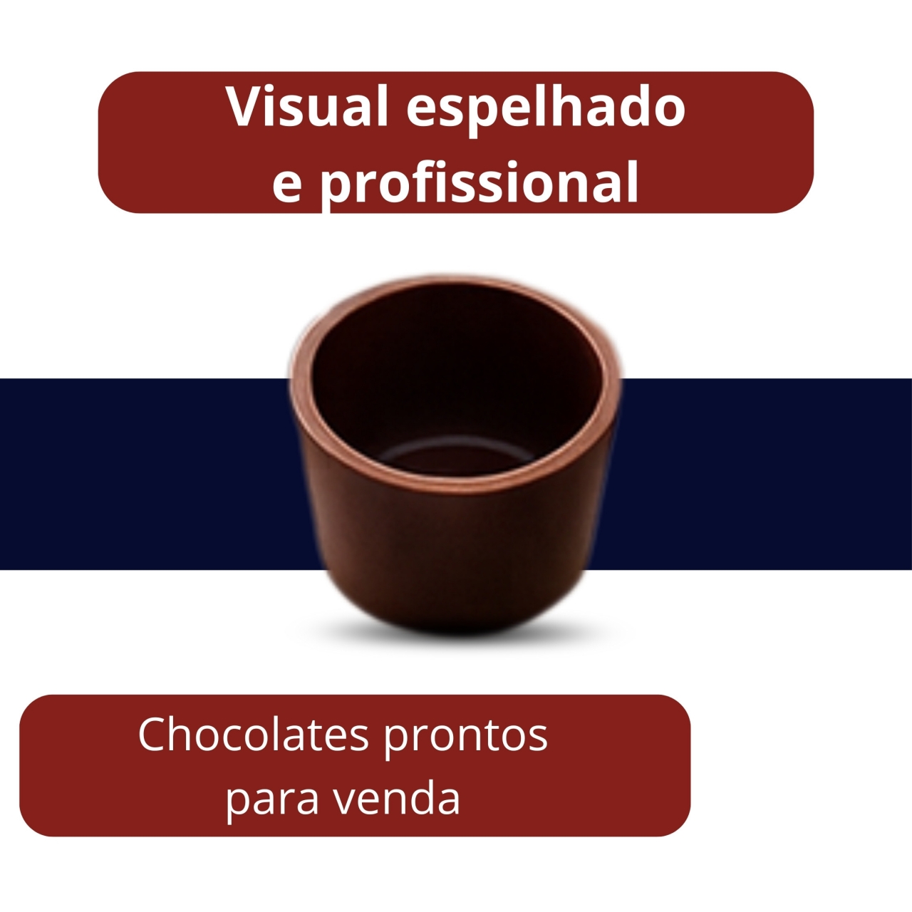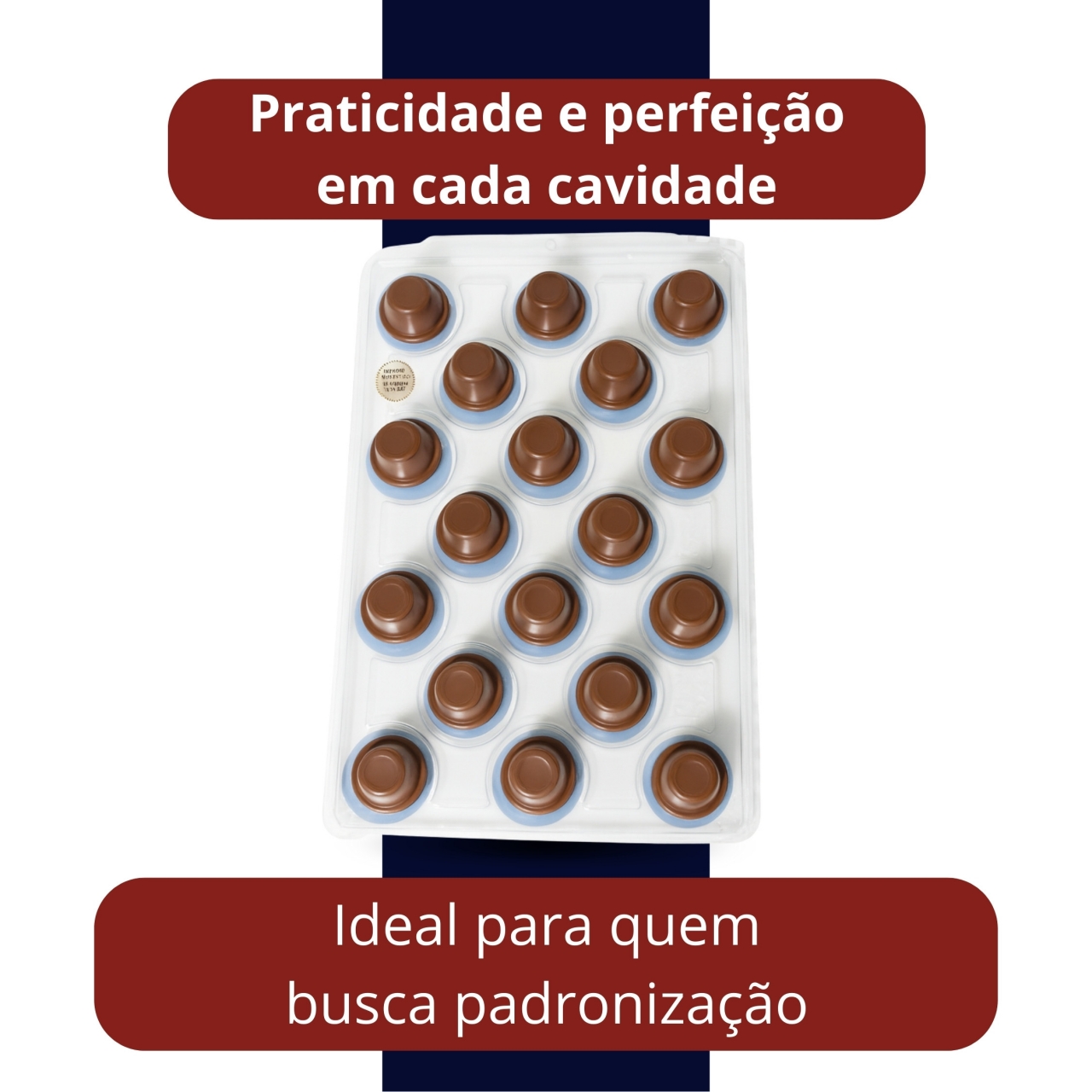 Forma especial desenvolvida para produção de copinhos de licor em chocolate, garantindo padronização e acabamento profissional.