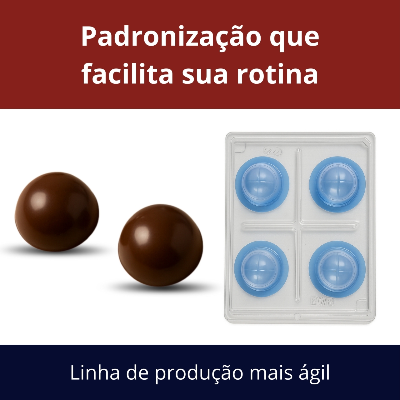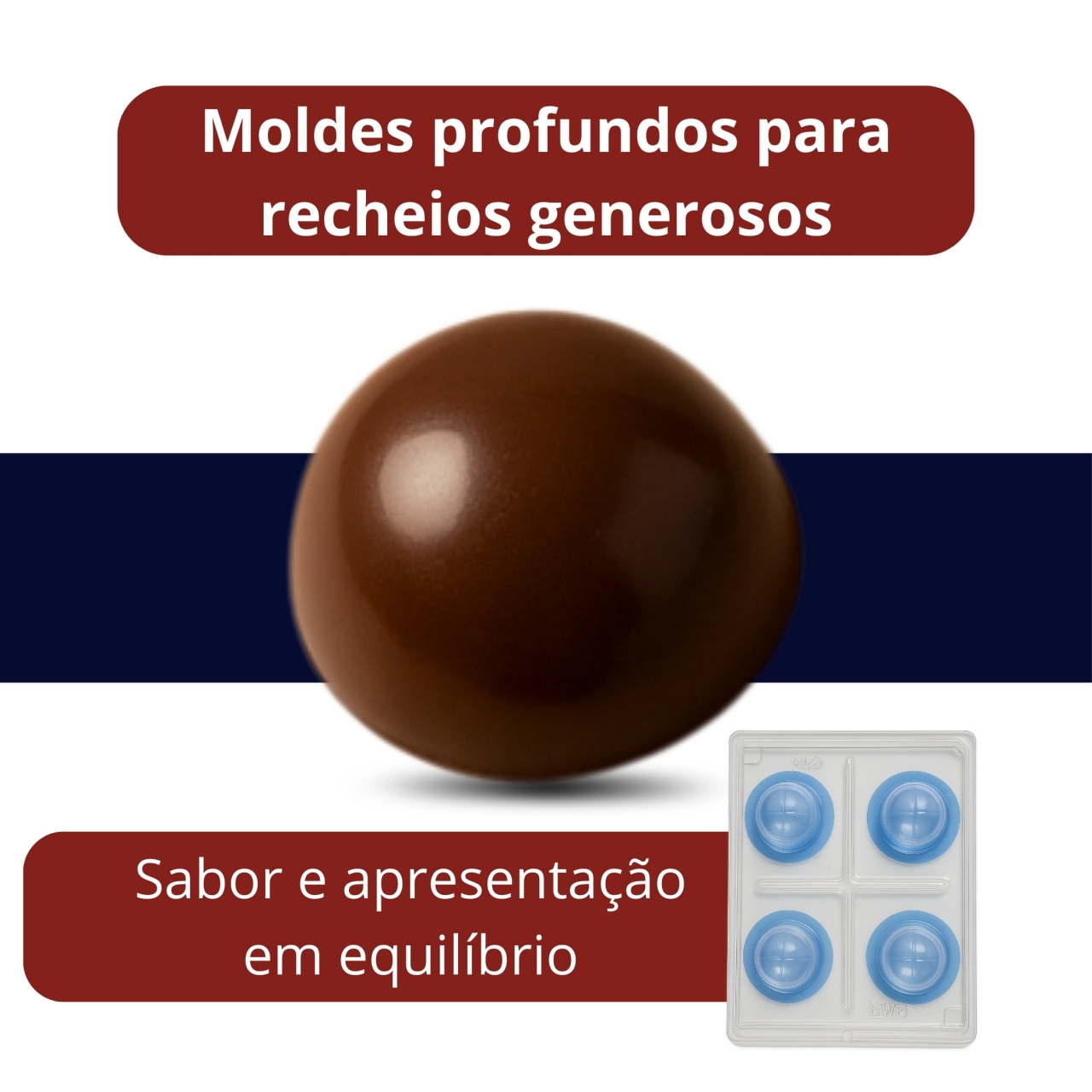 Forma desenvolvida para produção de trufas grandes com acabamento profissional. Ideal para confeiteiros que trabalham com chocolates recheados e doces de maior gramatura.